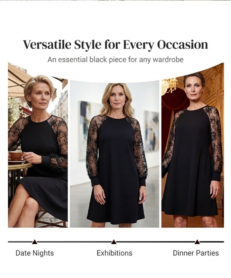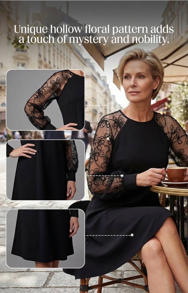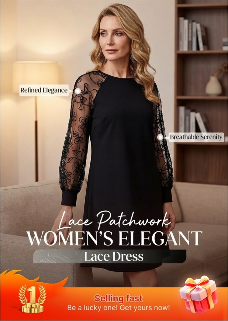 🔥2026 New Arrivals: 50% Off for a Limited Time!🔥Lace Patchwork Round Neck Long Sleeve Dress