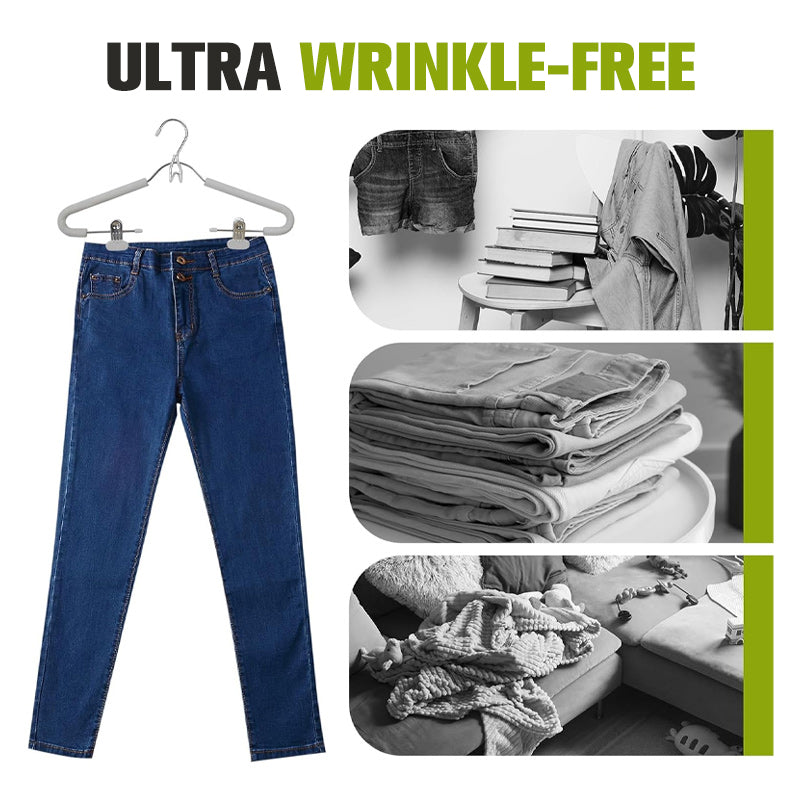 MULTIFUNCTIONAL CLIPS – Each hanger features two clips, perfect for holding skirts, pants, shorts, or accessories, providing a secure grip without damaging your clothing.