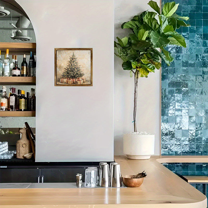 VINTAGE CHRISTMAS ARTWORK - Adds a timeless, festive charm to your home decor. The classic Christmas tree scene evokes a warm, nostalgic feeling, creating a cozy and inviting atmosphere for the holiday season.