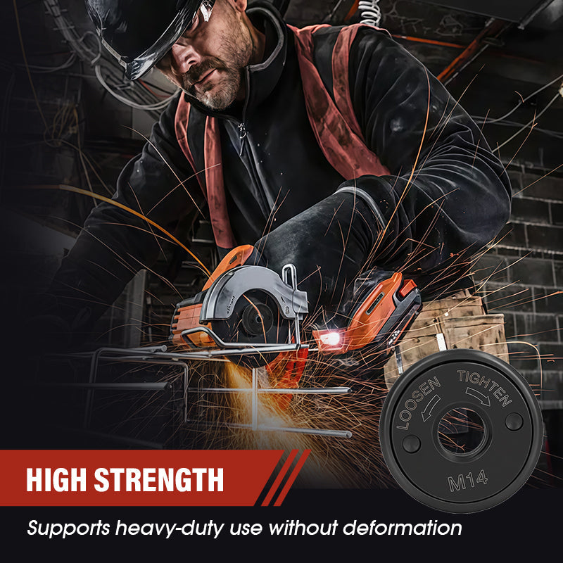 PRECISE THREAD FIT – Designed with M14 / 5/8"-11 threading, the flange nut offers a secure, precise fit onto standard angle grinder spindles. The clear thread structure ensures smooth installation and firm locking of discs, reducing slippage and vibration during operation. This precise threading enhances safety and operational stability, giving users confidence in both professional and home workshop settings.