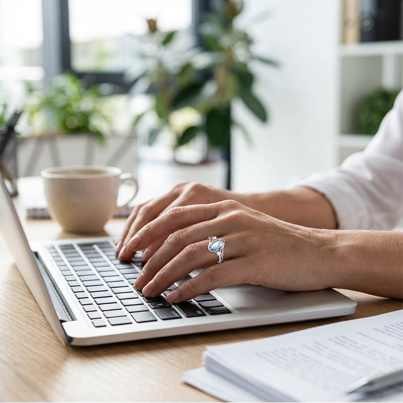 SPARKLING ZIRCONIA ACCENTS - High-quality zirconia stones are precisely set alongside the moonstone, adding a brilliant sparkle that beautifully catches the light. This enhances the ring's overall elegance and creates a luxurious impression.