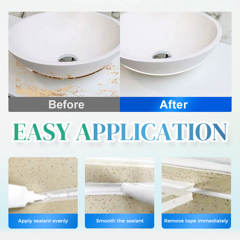 WATERPROOF & LEAK-PROOF SEALING: This sealant offers strong waterproof and leak-proof protection, effectively blocking seepage and moisture. Ideal for bathrooms, kitchens, sinks, toilets, and tiles, it ensures long-lasting durability and prevents yellowing or darkening over time.