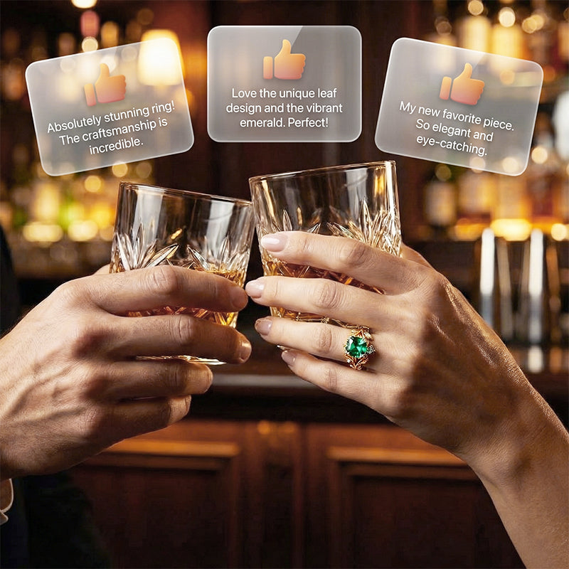 ✨💖Green Synthetic Crystal Ring with Intricate Leaf💍